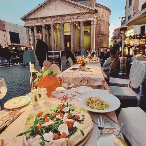 Que tal ter uma experiência gastronômica maravilhosa em Roma em um luxuoso jantar no centro da cidade eterna? Junte-se a um grupo privilegiado de menos de 10 pessoas em uma localização privilegiada perto do Panteão. Nosso guia local gourmet, irá acompanhá-lo nesta noite especial. Nosso ponto de encontro é na Piazza Della Minerva, onde iremos para um restaurante elegante e de gerência familiar que reservamos para você. Prepare-se para uma surpresa, pois além de oferecer pratos deliciosos, o restaurante abriga uma adega histórica que foi redescoberta durante uma reforma. Durante essa descoberta, uma majestosa estrutura romana foi identificada no porão, aqui, desfrutaremos do aperitivo, que consiste em uma taça de vinho espumante prosecco acompanhado de uma seleção deliciosa de frios e queijos de diversas regiões da Itália, para abrir o apetite. Após isso, será servido o jantar, começando com um prato tradicional de massa paccheri com molho cacio e pepe, seguido por uma opção de carne ou peixe acompanhada de legumes. Cada prato será acompanhado com cuidado por um sommelier do restaurante, e a experiência finaliza com uma maravilhosa seleção de doces italianos para a sobremesa.